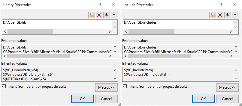 Önerilen yaklaşım, seçtiğiniz bir yerde, IDE ya da derleyicinizi kullanarak başvurabileceğiniz üçüncü parti tüm başlık dosyalarını ve kütüphanelerini içeren yeni bir dizin seti oluşturmaktır. Kişisel olarak, OpenGL projeleri için sırasıyla tüm kütüphane ve başlık dosyalarımı sakladığım bir Libs ve Include klasörü içeren tek bir klasör kullanıyorum. Artık tüm üçüncü parti kütüphanelerim tek bir yerde (birden fazla bilgisayar arasında paylaşılabilecek şekilde) düzenleniyor.Bununla birlikte, yeni bir proje oluşturduğumuzda, IDE’ye bu dizinleri nerede bulacağını söylememiz gerekir.