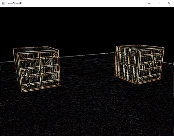 Parça gölgelendiricide, ilk olarak her çevreleyen doku koordinatı için 9 vec2 ofsetinden oluşan bir dizi oluşturuyoruz. Ofset, beğeninize göre özelleştirebileceğiniz sabit bir değerdir. Daha sonra çekirdeği tanımlıyoruz, bu örnekte, her bir renk değerini çevreleyen tüm pikselleri ilginç bir şekilde örnekleyerek keskinleştiren keskinleştirilmiş bir çekirdek. Son olarak, örnekleme yaparken her bir ofseti mevcut doku koordinatına ekleriz ve ardından bu doku değerlerini, birlikte eklediğimiz ağırlıklı çekirdek değerleriyle çarpıyoruz.